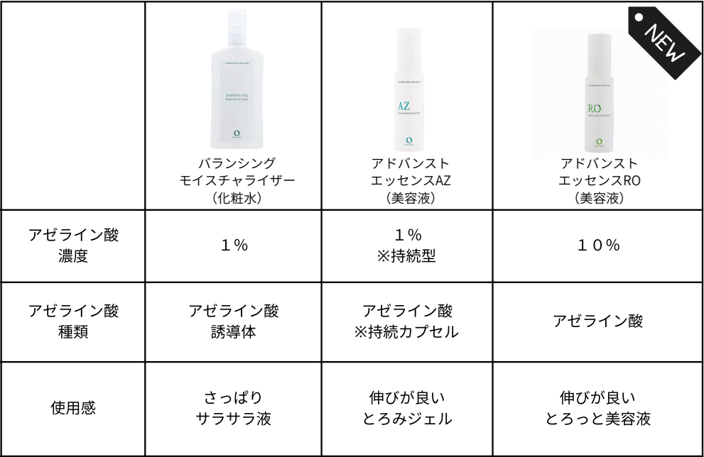 シェルシュールのアゼライン酸化粧品比較表